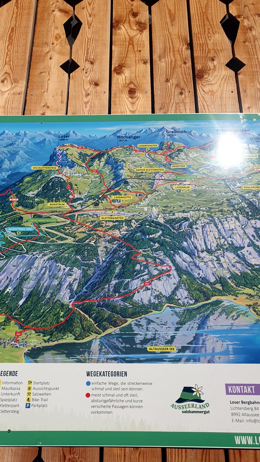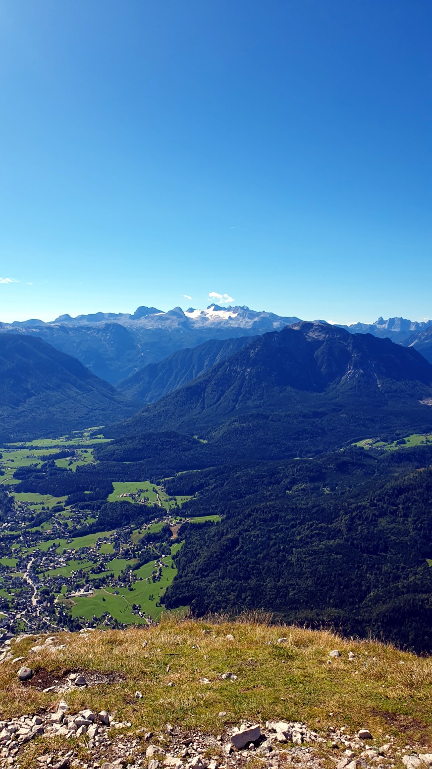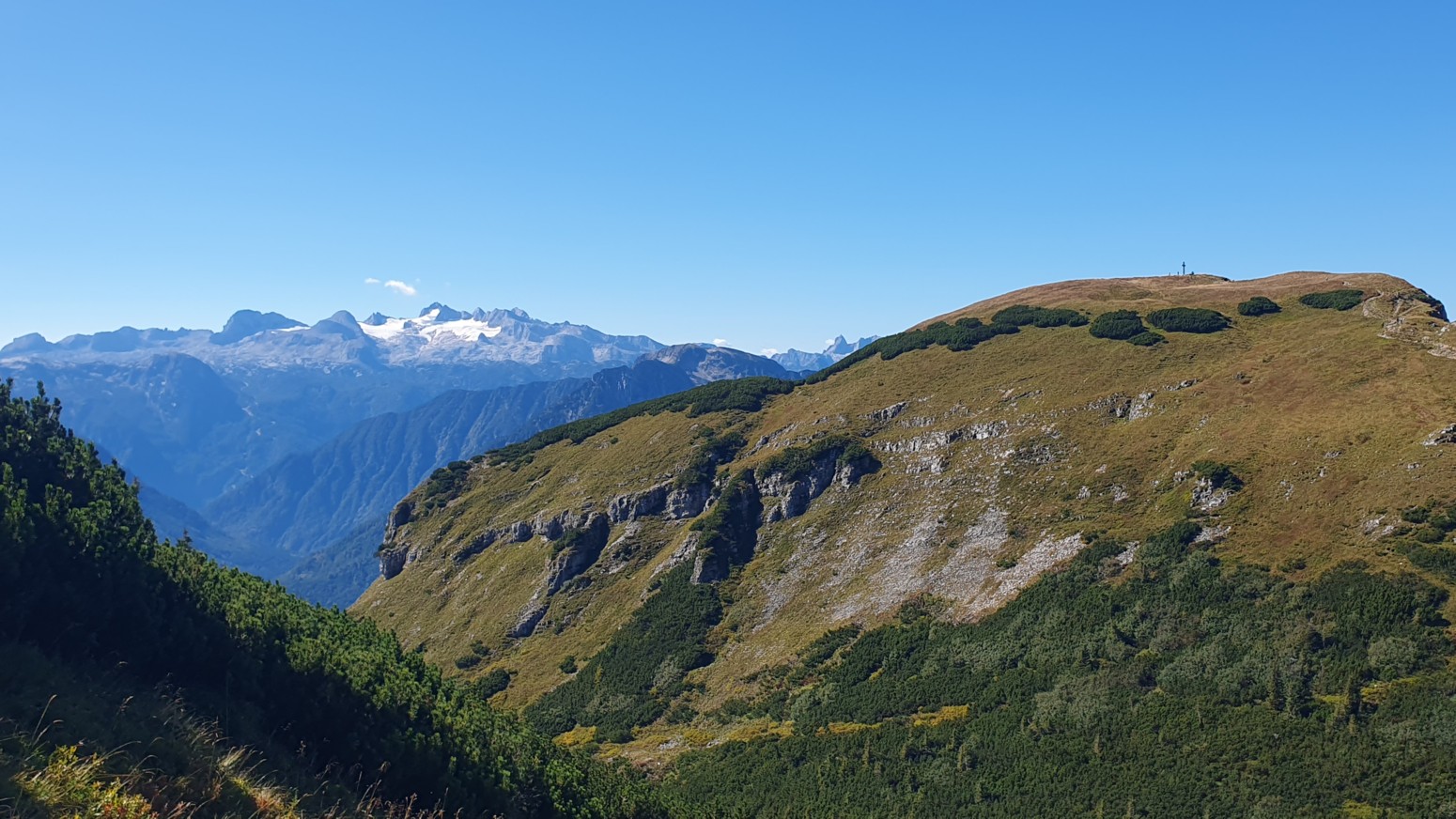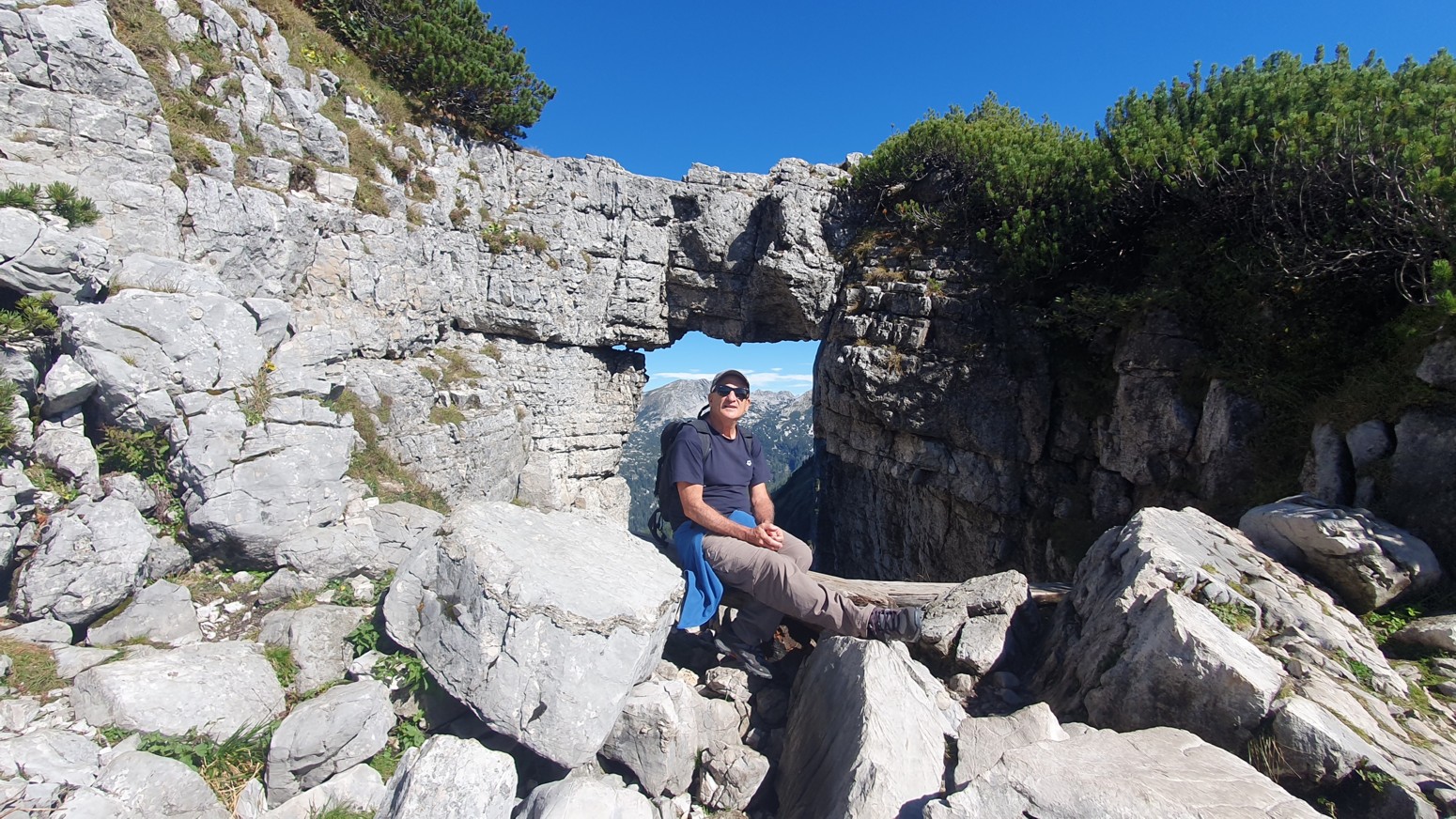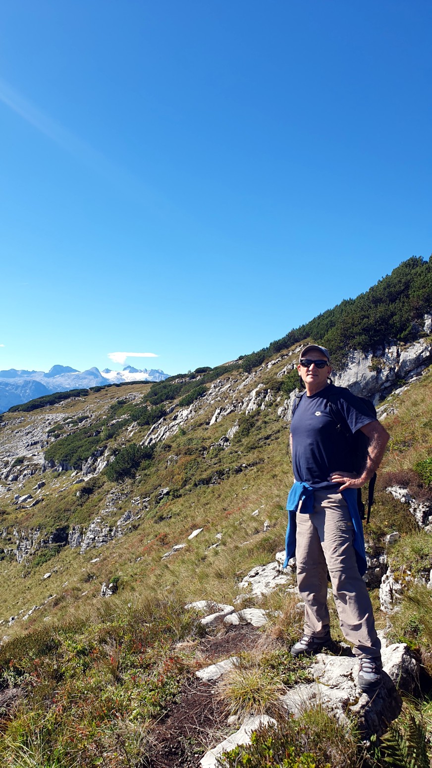 En medio de malas previsiones metereológicas para los próximos días, amanece un esplendido día de cielo azul, así que lo aprovecharemos para hacer montaña. La elegida es la cercana cumbre del "Loser" accesible tanto en invierno como en verano porque hay una cabina panorámica que te sube con comodidad a la estación de ski. Primero tengo que empezar diciendo que esa accesibilidad convierte al lugar en un paraíso ya sea para montañeros, esquiadores en temporada invernal, ciclistas, parapentistas, espeleólogos, vía ferratistas o turistas en general que disfrutaran de unas vistas inigualables hacia los glaciares del macizo de Dachstein. Nosotros una vez en la estación superior del moderno telecabina remontaremos por las pistas de ski hasta la llamada "Loser Fenster" o ventana del Loser que es una formación rocosa del tipo "puente de roca" muy peculiar y atractiva. Desde allí nos dirigiremos a la cima del Hochanger de 1837 metros de altura para luego ir a nuestro objetivo del día que es la cima del Loser de 1838m, para lo cual debemos descender desde la primera cima a un collado que hay entre las dos, y volver a remontar el desnivel. Luego de bajada hay la opción desde el collado de ir directamente abajo hasta la estación intermedia del telesilla. En un día esplendido como hoy, las vistas son increíbles y la verdad es que se disfruta mucho del día. Yo siempre digo que los remontes mecánicos son muy caros en los Alpes, pero compensan con creces en días de buen tiempo como este...