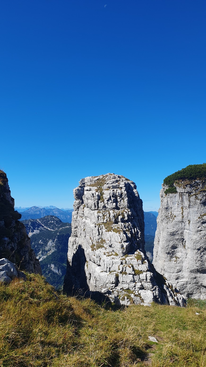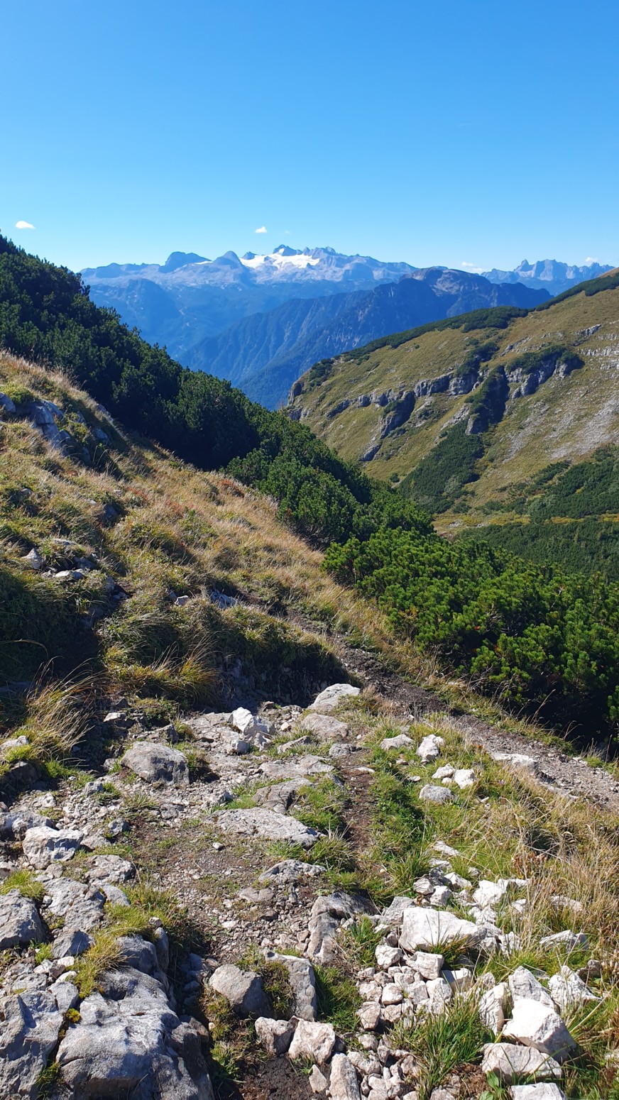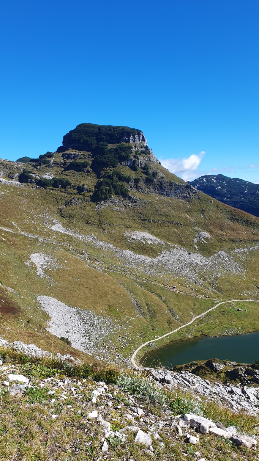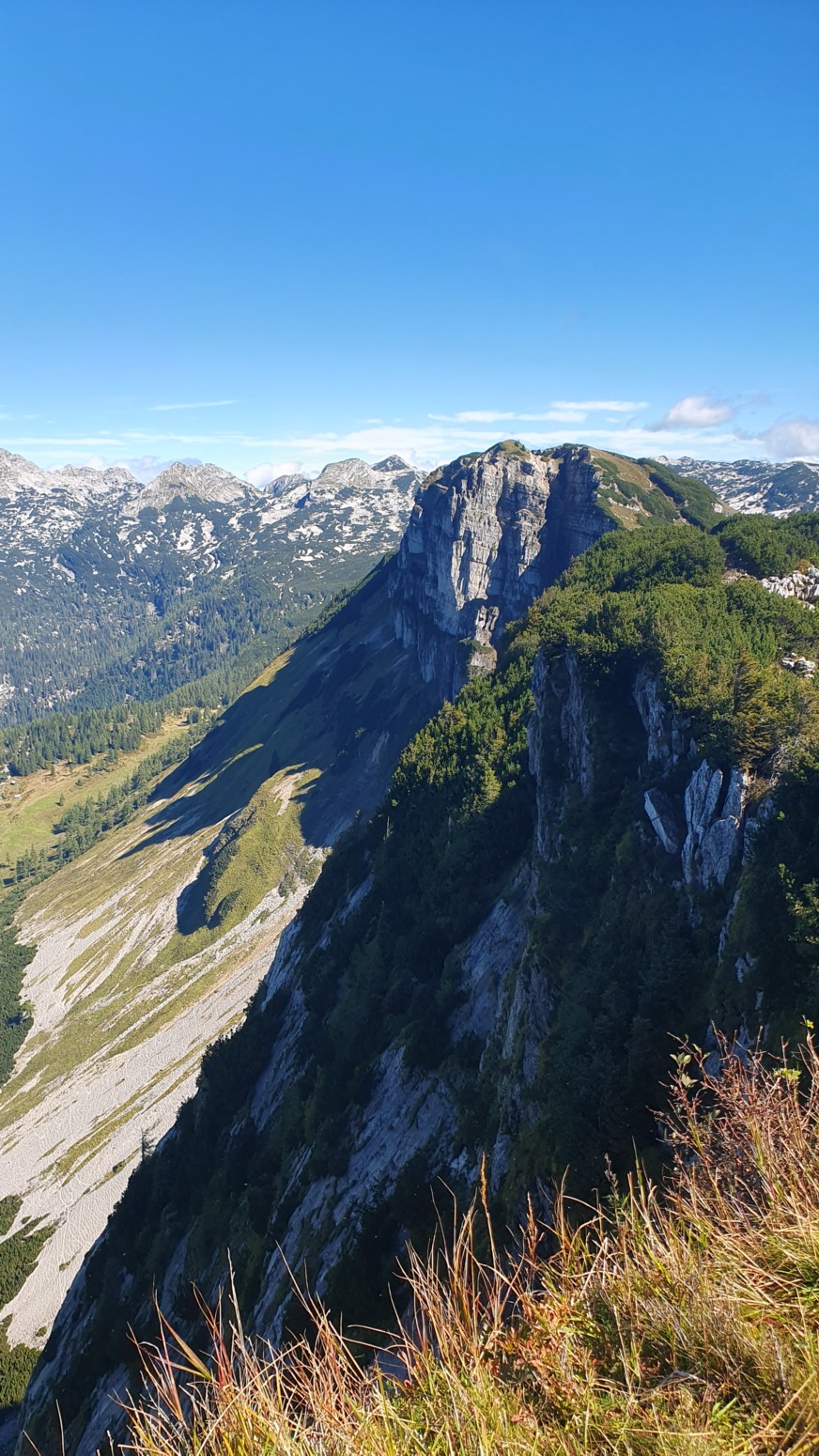 En medio de malas previsiones metereológicas para los próximos días, amanece un esplendido día de cielo azul, así que lo aprovecharemos para hacer montaña. La elegida es la cercana cumbre del "Loser" accesible tanto en invierno como en verano porque hay una cabina panorámica que te sube con comodidad a la estación de ski. Primero tengo que empezar diciendo que esa accesibilidad convierte al lugar en un paraíso ya sea para montañeros, esquiadores en temporada invernal, ciclistas, parapentistas, espeleólogos, vía ferratistas o turistas en general que disfrutaran de unas vistas inigualables hacia los glaciares del macizo de Dachstein. Nosotros una vez en la estación superior del moderno telecabina remontaremos por las pistas de ski hasta la llamada "Loser Fenster" o ventana del Loser que es una formación rocosa del tipo "puente de roca" muy peculiar y atractiva. Desde allí nos dirigiremos a la cima del Hochanger de 1837 metros de altura para luego ir a nuestro objetivo del día que es la cima del Loser de 1838m, para lo cual debemos descender desde la primera cima a un collado que hay entre las dos, y volver a remontar el desnivel. Luego de bajada hay la opción desde el collado de ir directamente abajo hasta la estación intermedia del telesilla. En un día esplendido como hoy, las vistas son increíbles y la verdad es que se disfruta mucho del día. Yo siempre digo que los remontes mecánicos son muy caros en los Alpes, pero compensan con creces en días de buen tiempo como este...