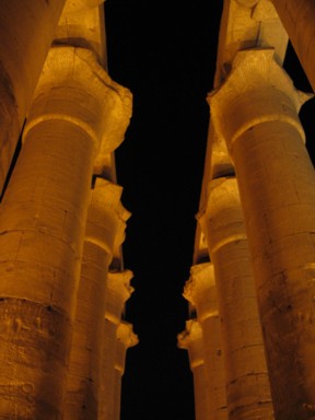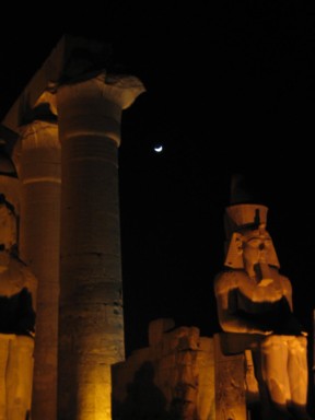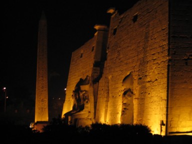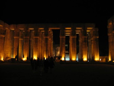 entrada del Templo de Luxor (foto 1). Es precisamente este Templo de Luxor el primero que visitamos, y lo hacemos en una espectacular visita nocturna, está totalmente iluminado y su