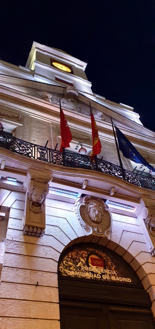 Año Nuevo desde la torre del reloj del edificio mas antiguo de la plaza: la Casa de Correos, las cuales son televisadas por la