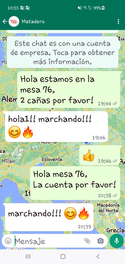 tienes que ir a la barra, y ni siquiera hablar al camarero, basta con hacer tu pedido por Whatsapp, y este llega