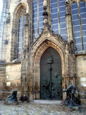 un monumento conmemorativo a Lutero que predicaba en esta iglesia allá en el