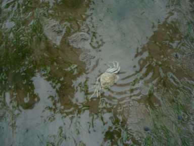 las aves del lugar (foto 8), vemos pequeños cangrejos (foto 9). Cavamos en el