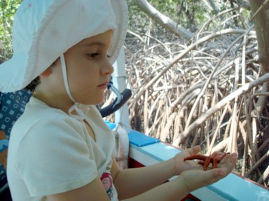 por ejemplo en la (foto 5), Ana Sofía observa estrellas de mar.