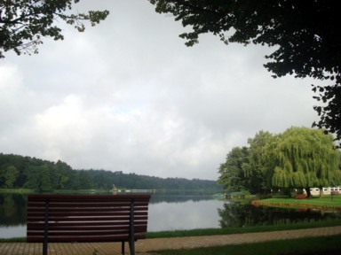 hotelitos junto al lago, senderos marcados para pasear, playa en el lago en