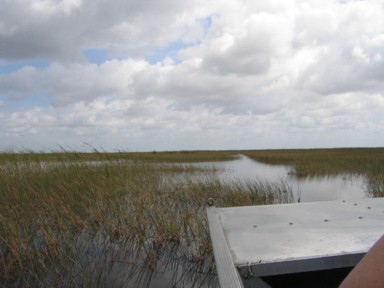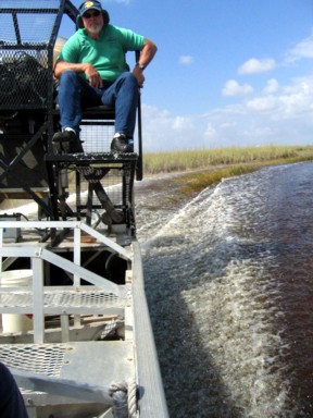 se hace volando casi sobre el agua en los famosos "airboats" que tantas veces se