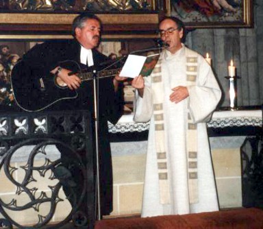 Lo de los dos curas es porque se ofició una boda ecuménica (Protestante por la novia, y