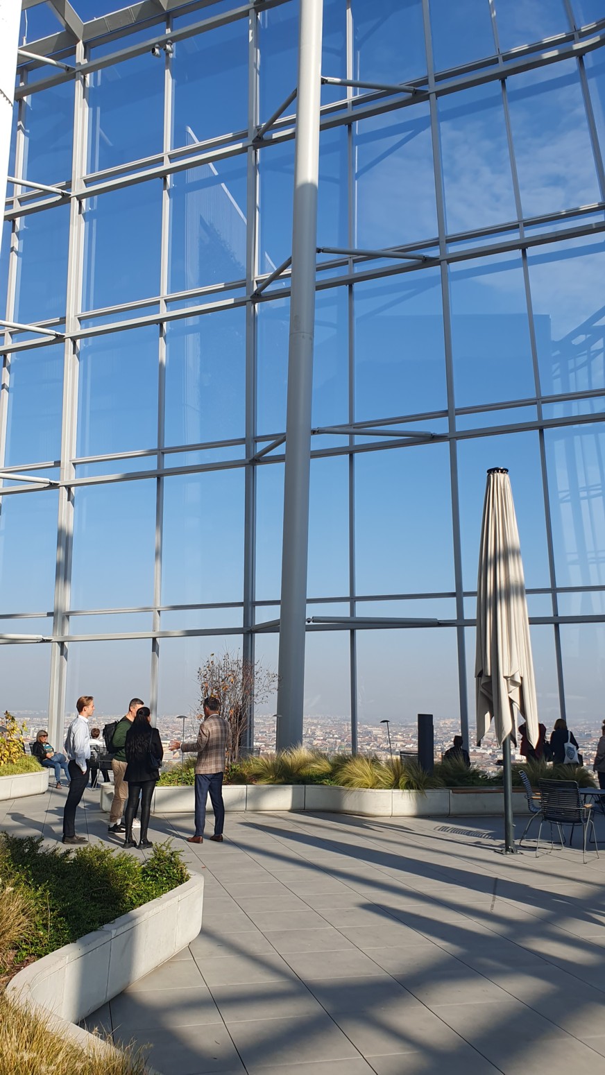 Todo este mirador es cerrado pero acristalado permitiendo una vista 360 grados de la ciudad,