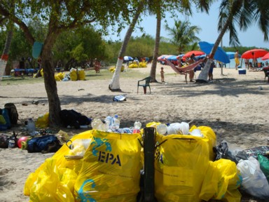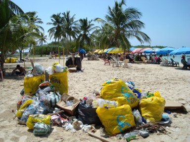 montones de bolsas de basura por todos lados (foto 2). Recorremos la playa de un