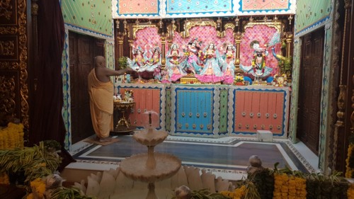principal, que alberga al Señor Krishna en su aspecto de Radha Gopinath, es decir Krishna,