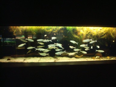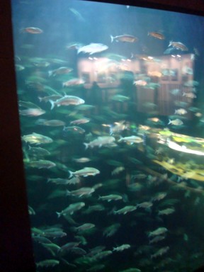 como no podía ser de otra manera. Decenas y decenas de acuarios, y peceras de