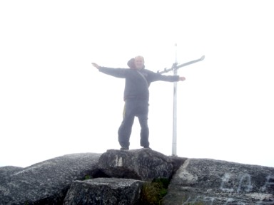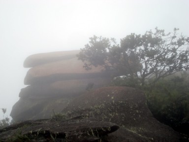 quedamos envueltos en una niebla que ya no nos abandonaría hasta la cima (foto