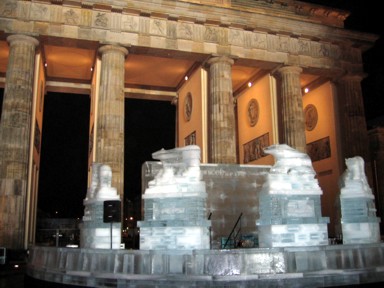 delante de la Puerta de Brandemburgo, y es que no hay peligro que se descongele, la