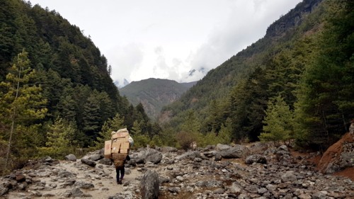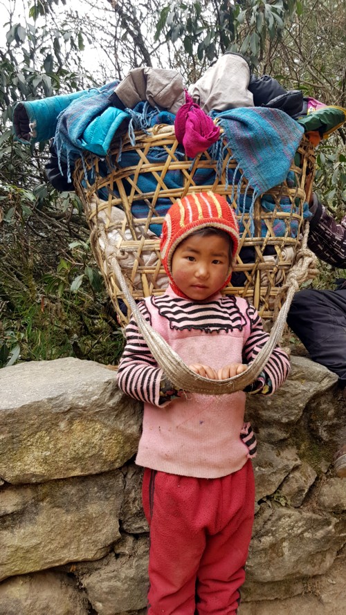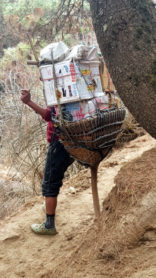 necesitamos, y algo de galletas y chucherías. Nuestro porteador carga con nuestras mochilas y el resto de nuestras