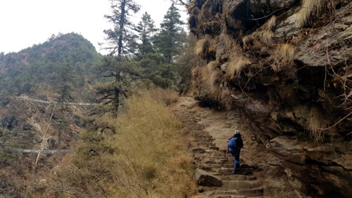 La segunda jornada nos llevara desde Phakding situado a 2625m de altura, hasta Namche Bazar a 3500, por