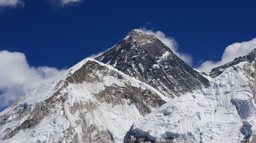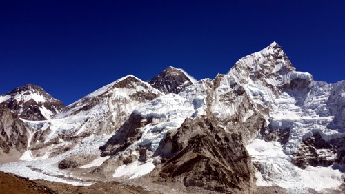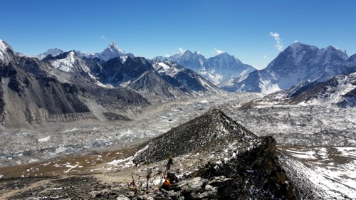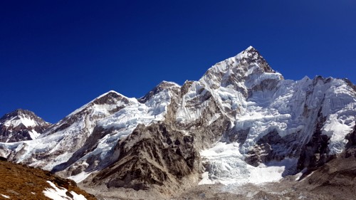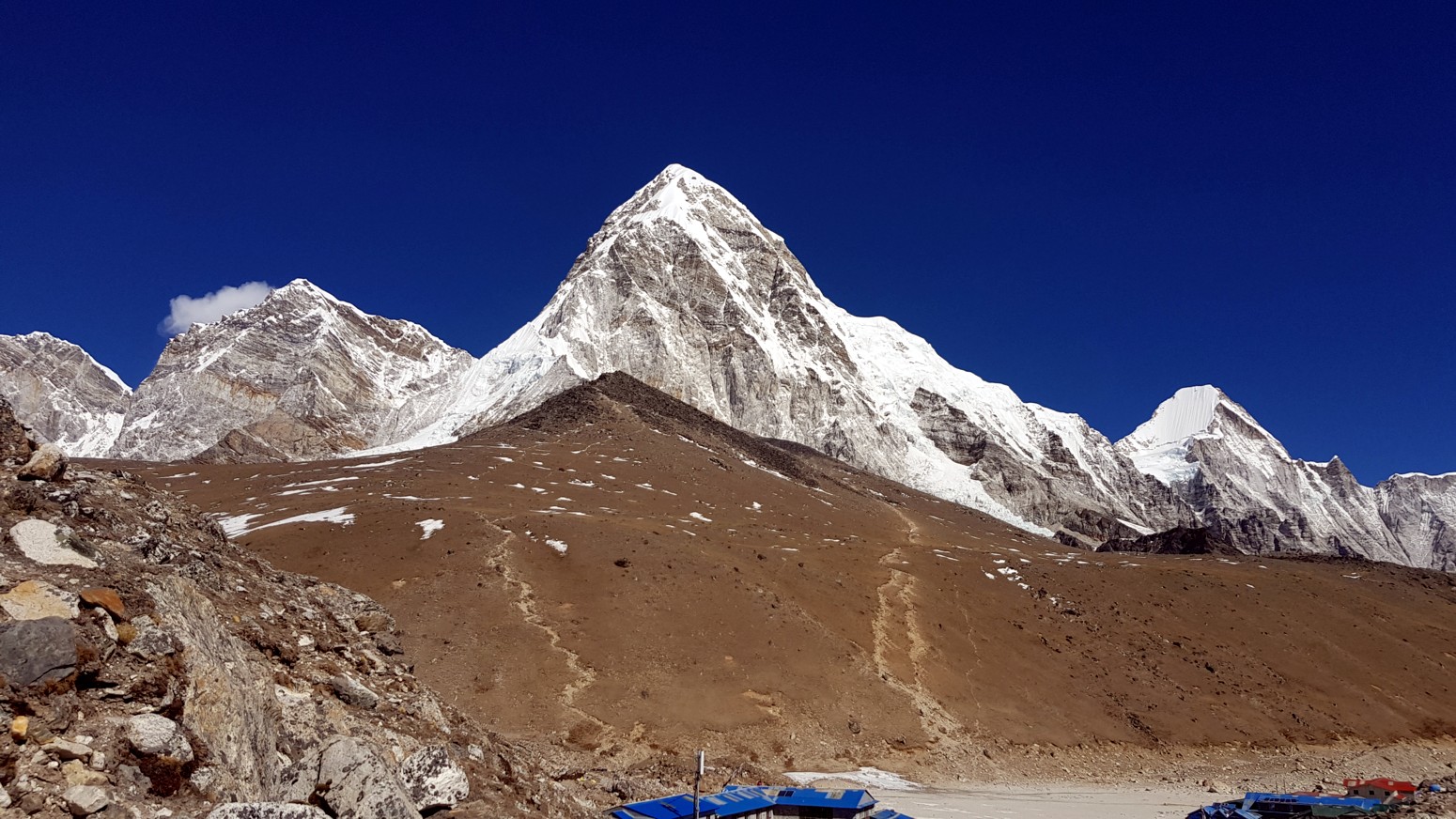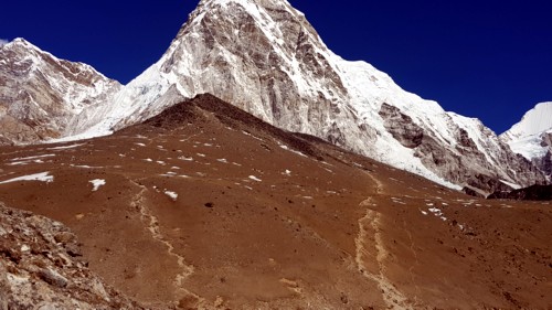 Llegando a Gorakshep lo primero que se aprecia detrás de las casas del poblado aparte del majestuoso