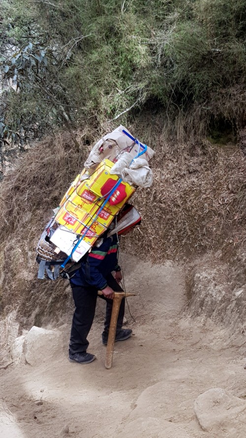 montañas, los porteadores que acarrean mercancías, charlar con la gente, con otros turistas que suben o