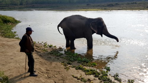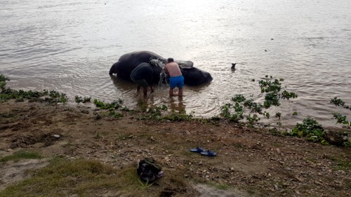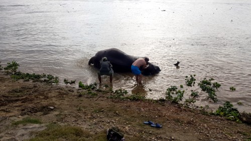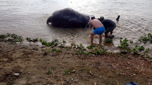 Después de la jornada de trabajo, todo elefante se ha ganado su premio que consiste en un agradable