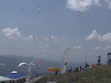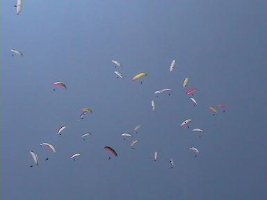 cuestión de segundos todo el cielo plagado de parapentes, con su particular danza