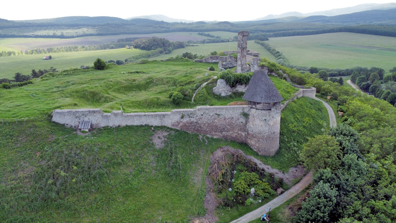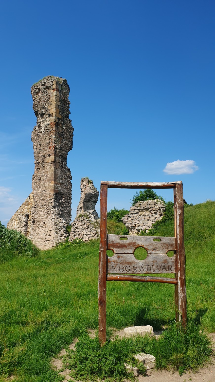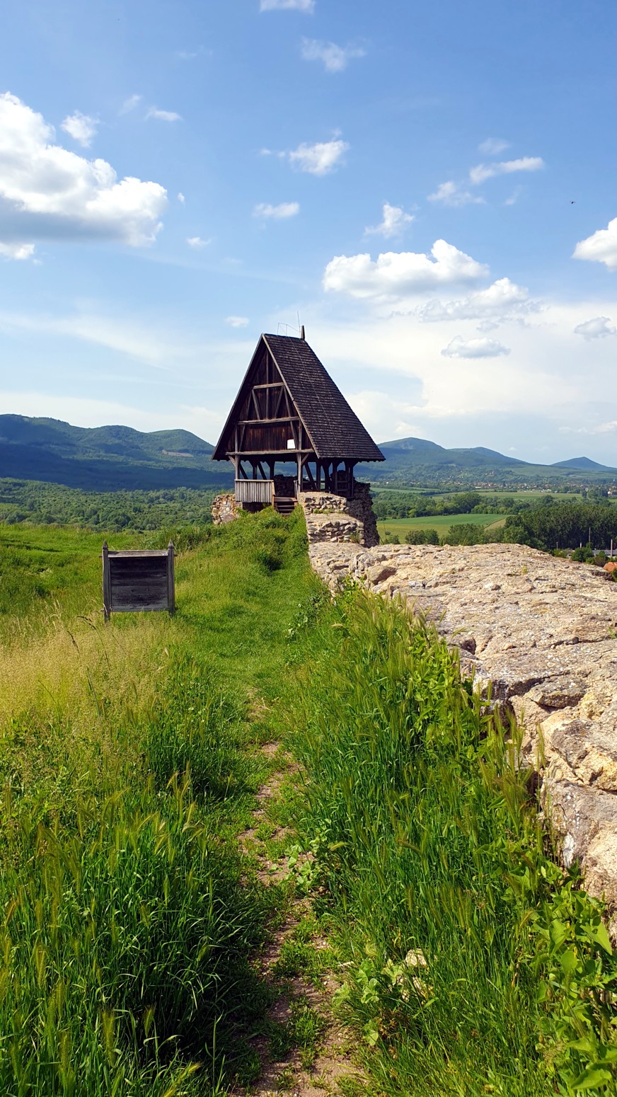 Este castillo ya se ve desde lejos por situarse a los pies del Börzsöny, en un solitario cono de andesita de 286 m de altura en su borde oriental .