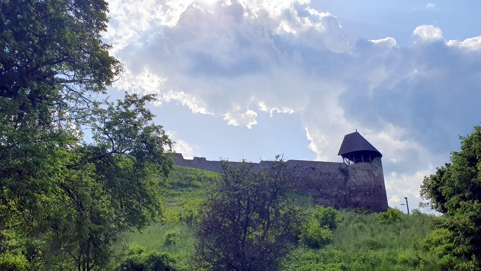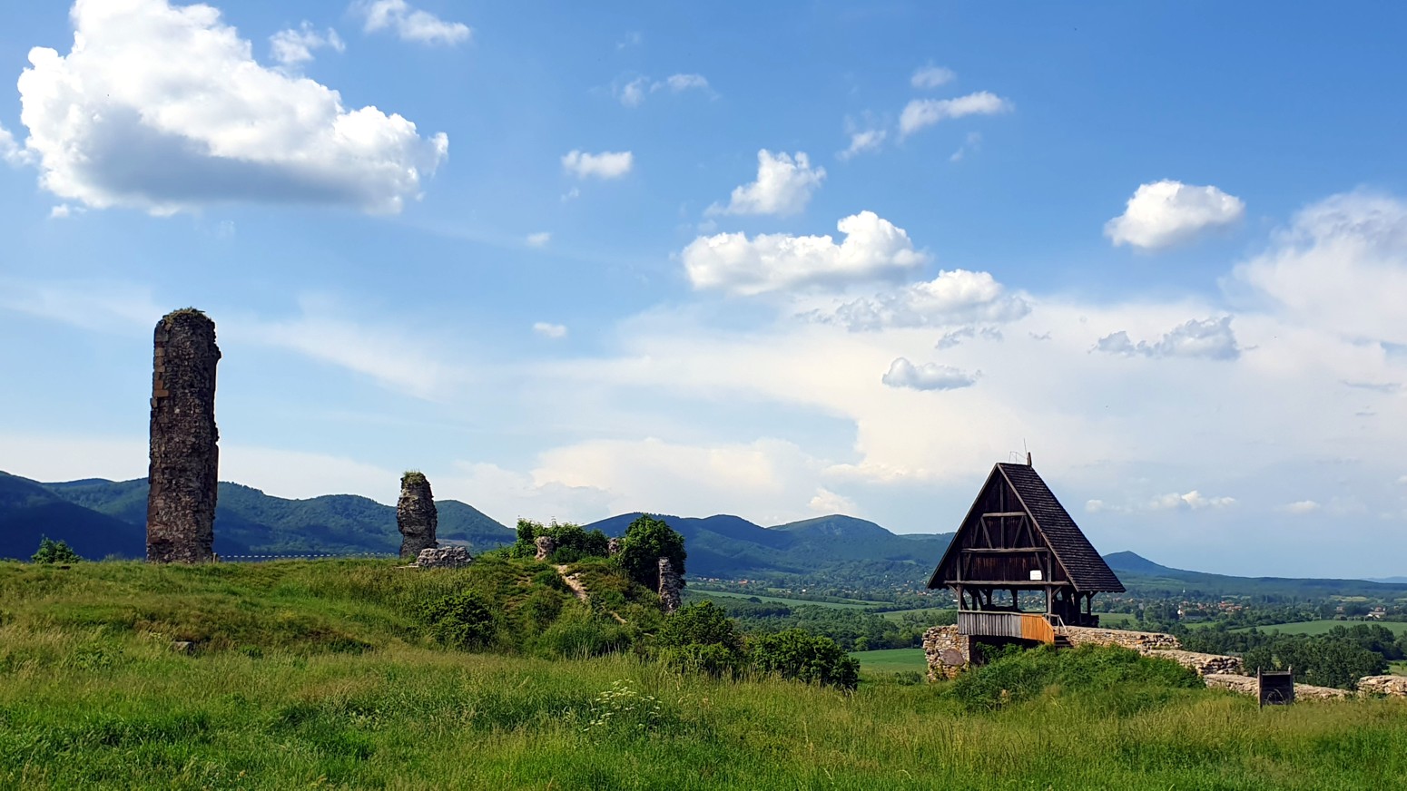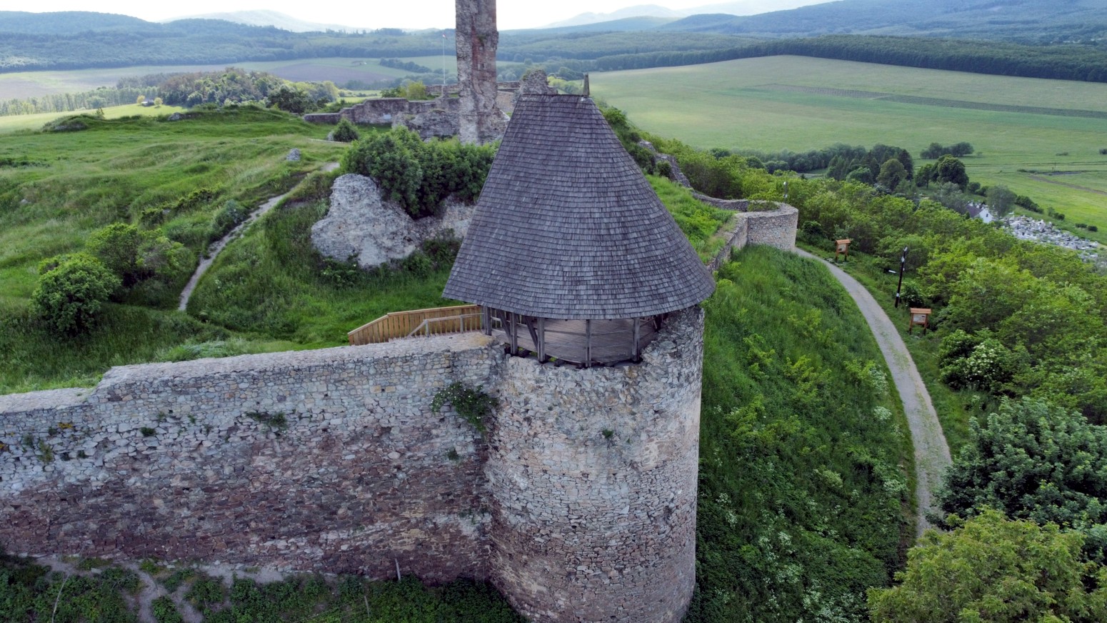 Este castillo ya se ve desde lejos por situarse a los pies del Börzsöny, en un solitario cono de andesita de 286 m de altura en su borde oriental .