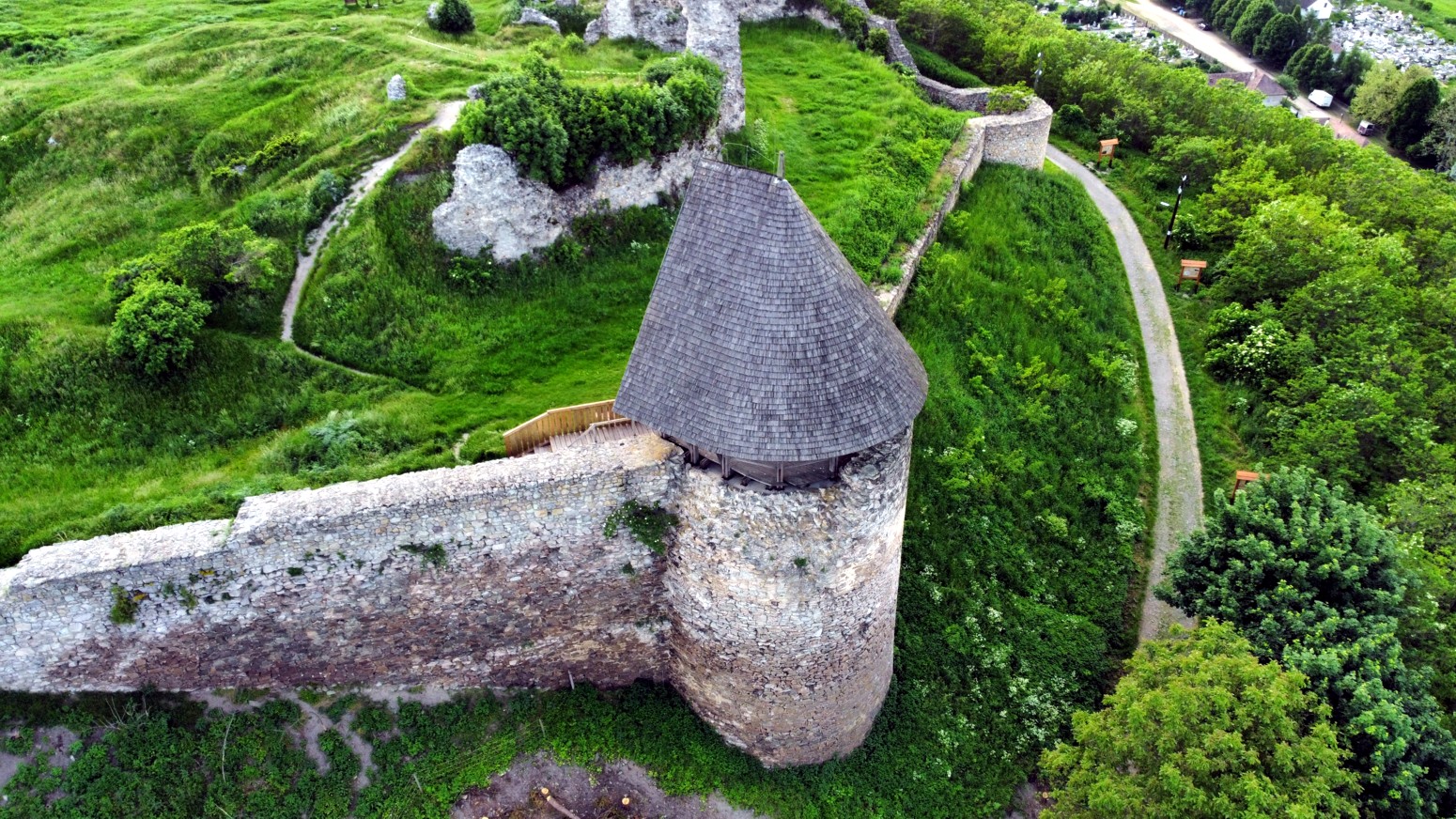 las vistas exteriores hacia la población. Luego con el dron si se obtienen vistas mas espectaculares y que dan una idea mas exacta del tamaño que tenia...