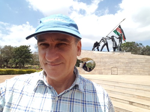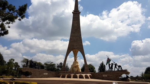 una escultura de granito y mármol de 24 metros de altura coronada con la bandera de Kenia, desde que el 12 de Diciembre de 1963