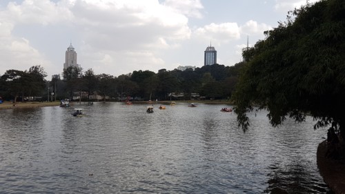 El Uhuru Park, en el centro de la ciudad (fotos 5 a 7), es otra cosa, allí va la gente a pasear, a descansar e incluso para