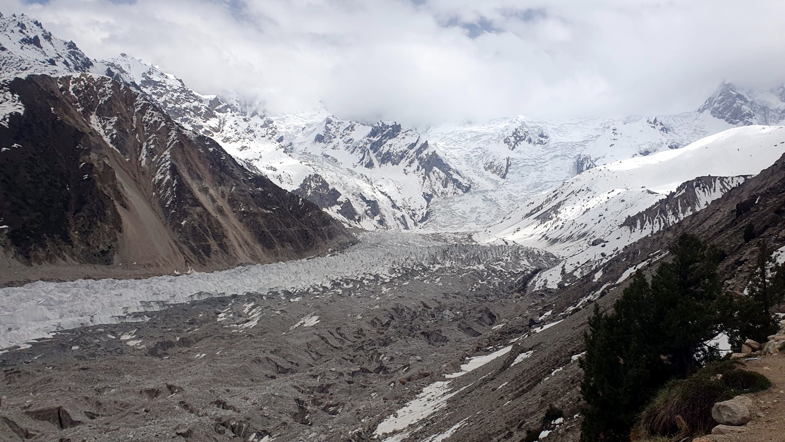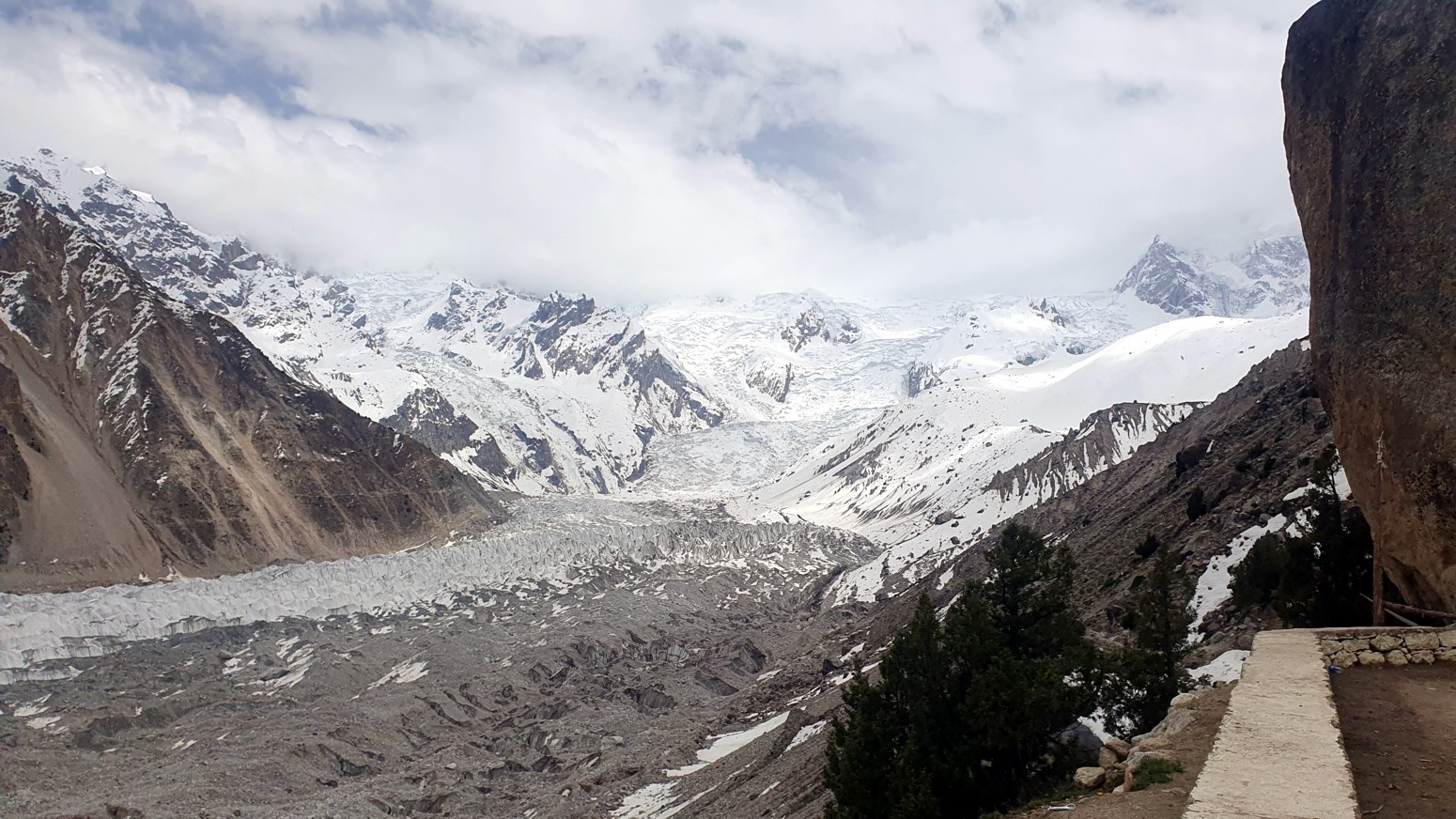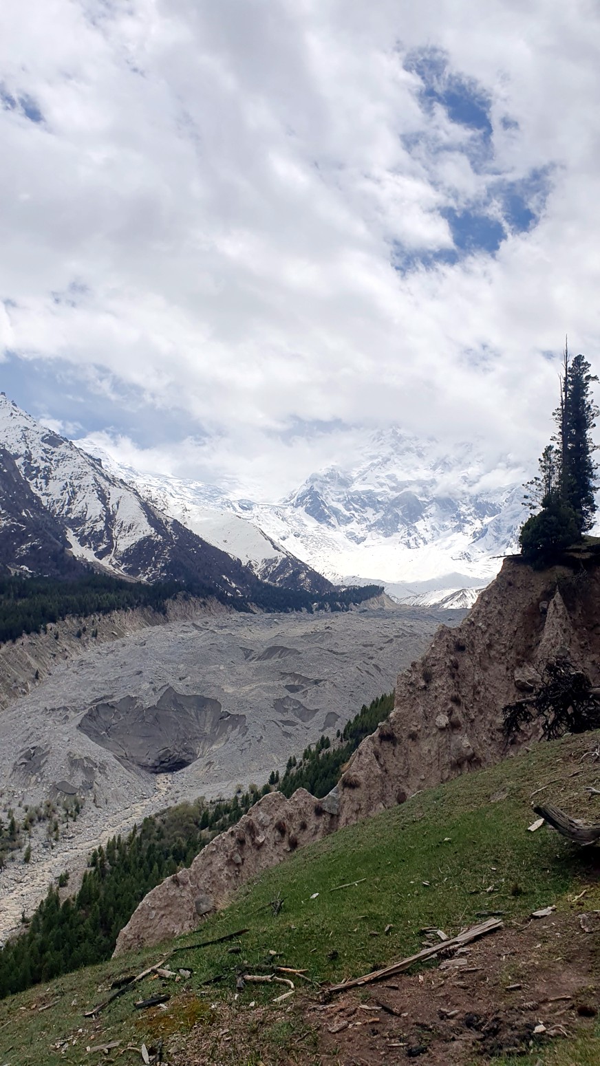 una pasada con las vistas a los glaciares que bajan del Nanga Parbat.