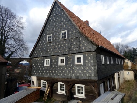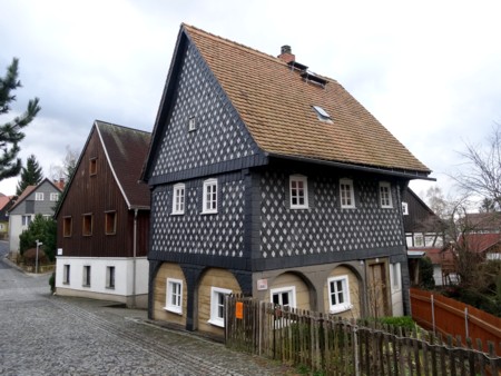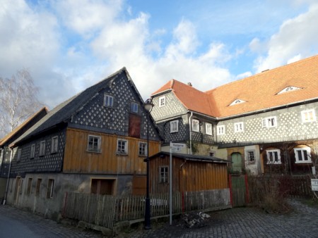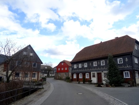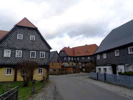 Muy cerca de Löbau, hay un pequeño pueblo-museo muy interesante declarado monumento de interés histórico, por constituir un conjunto homogéneo muy bien conservado de casas de estilo "sorbio", llamadas "Umgebindehäuser. Y lo mejor de todo es que una gran mayoría de esas 250 casas típicas se pueden visitar, unas por que son museos, otras porque son los bares, restaurantes, casas de antigüedades, o la oficina de información, si bien es cierto que ahora en invierno, no era posible ver mucho y la mayoría estaban cerradas. Aun así el simple paseo por sus callejuelas, dejarse perder por ellas , por su centro, por su iglesia, vale la pena y es muy interesante...