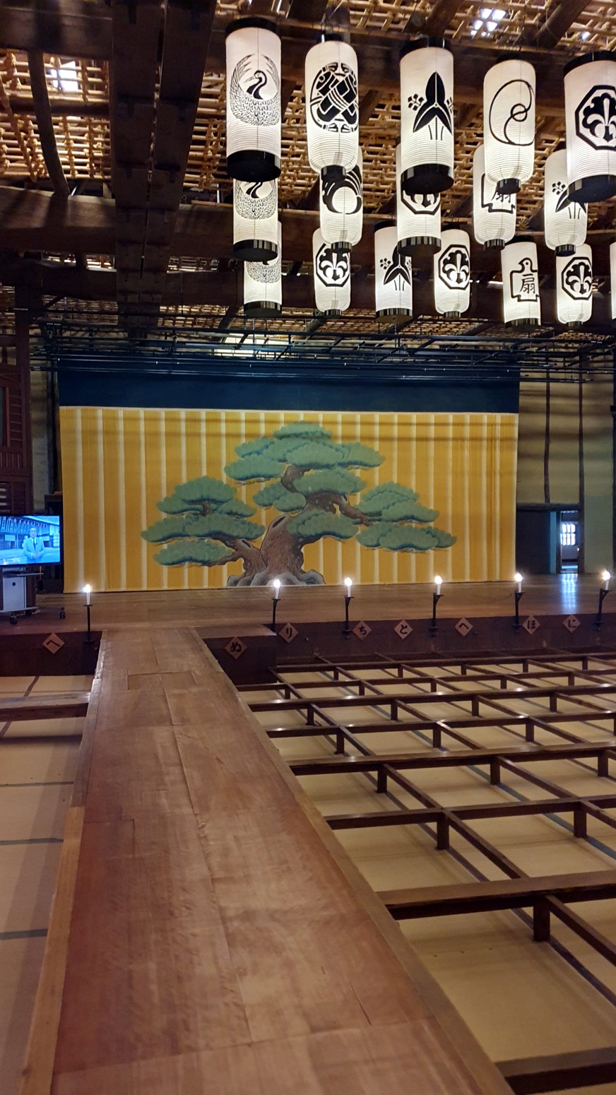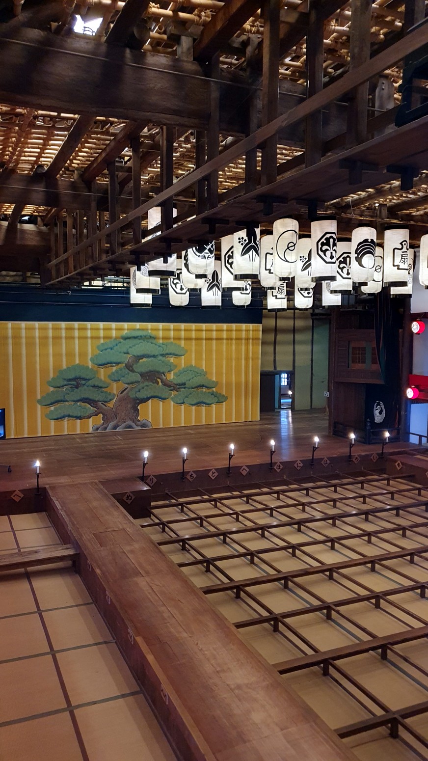 de kabuki y cuando no se realizan espectáculos, el teatro está abierto a los visitantes que pueden explorar la sala de audiencias, el escenario y los