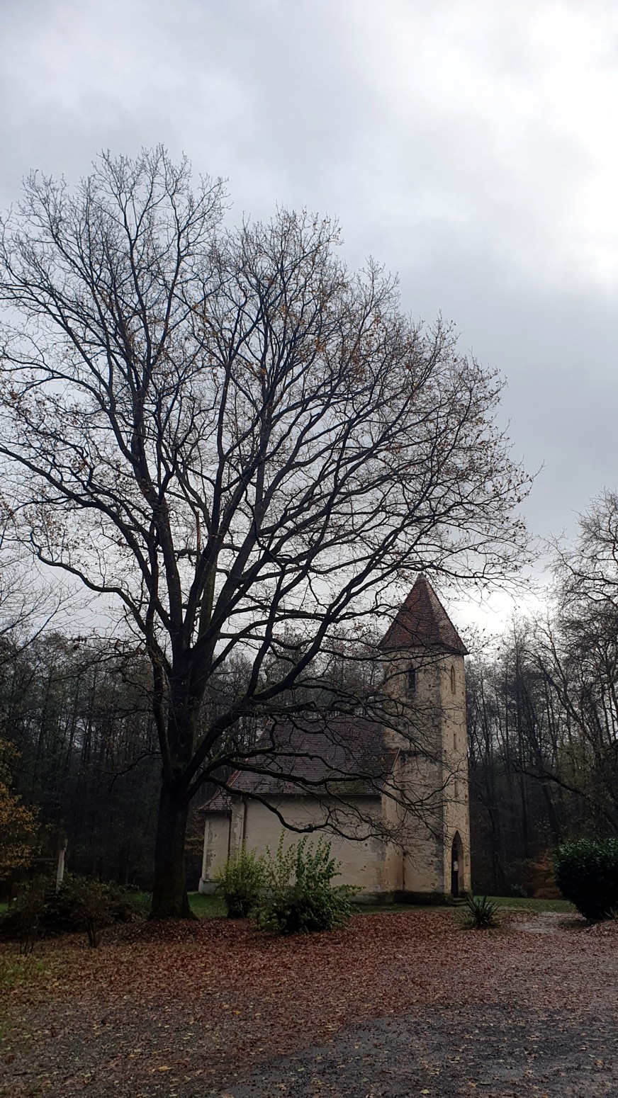 La iglesia fue erigida y nombrada en honor al Espíritu Santo, sus frescos fueron realizados por Juan Aquila de Radkersburg