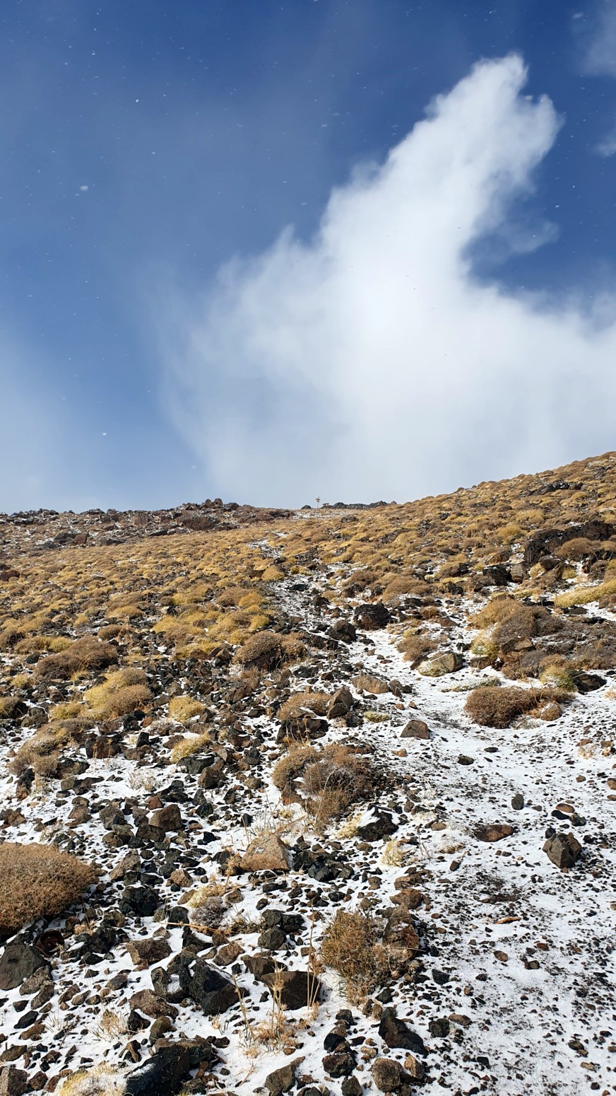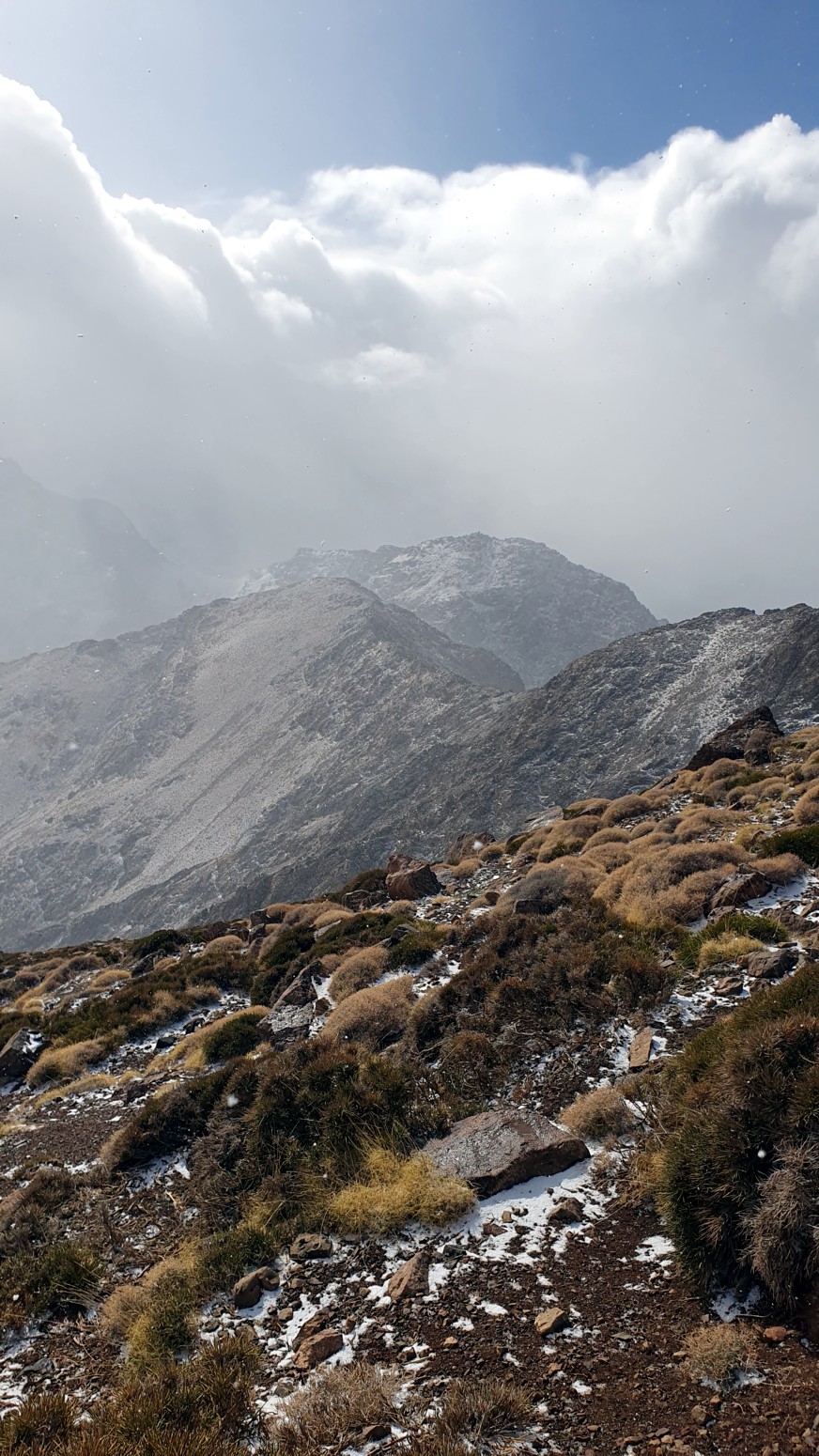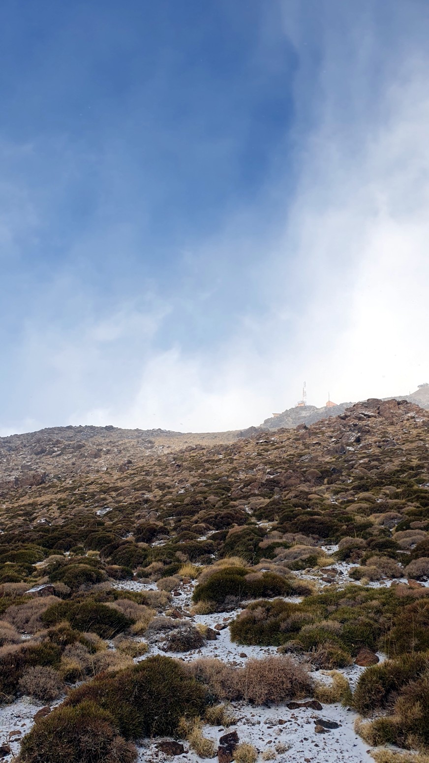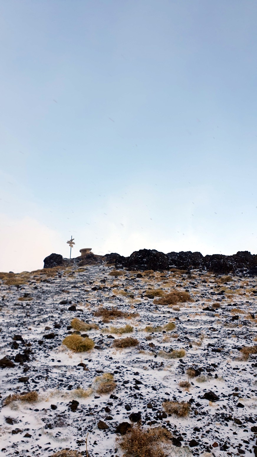 Nos nevó mínimamente mientras subíamos a la cima y
