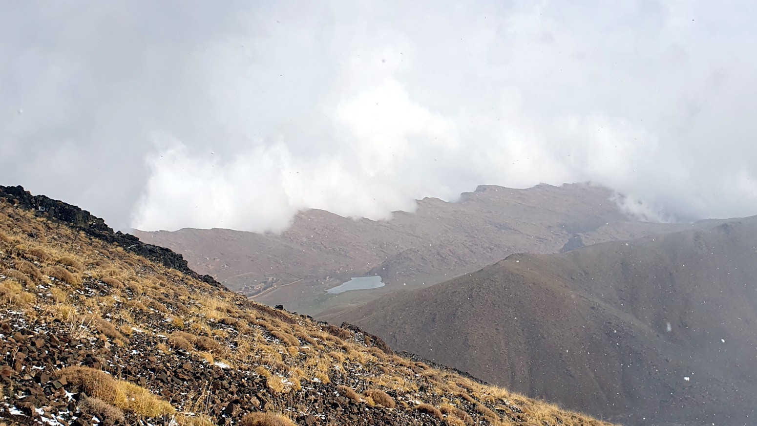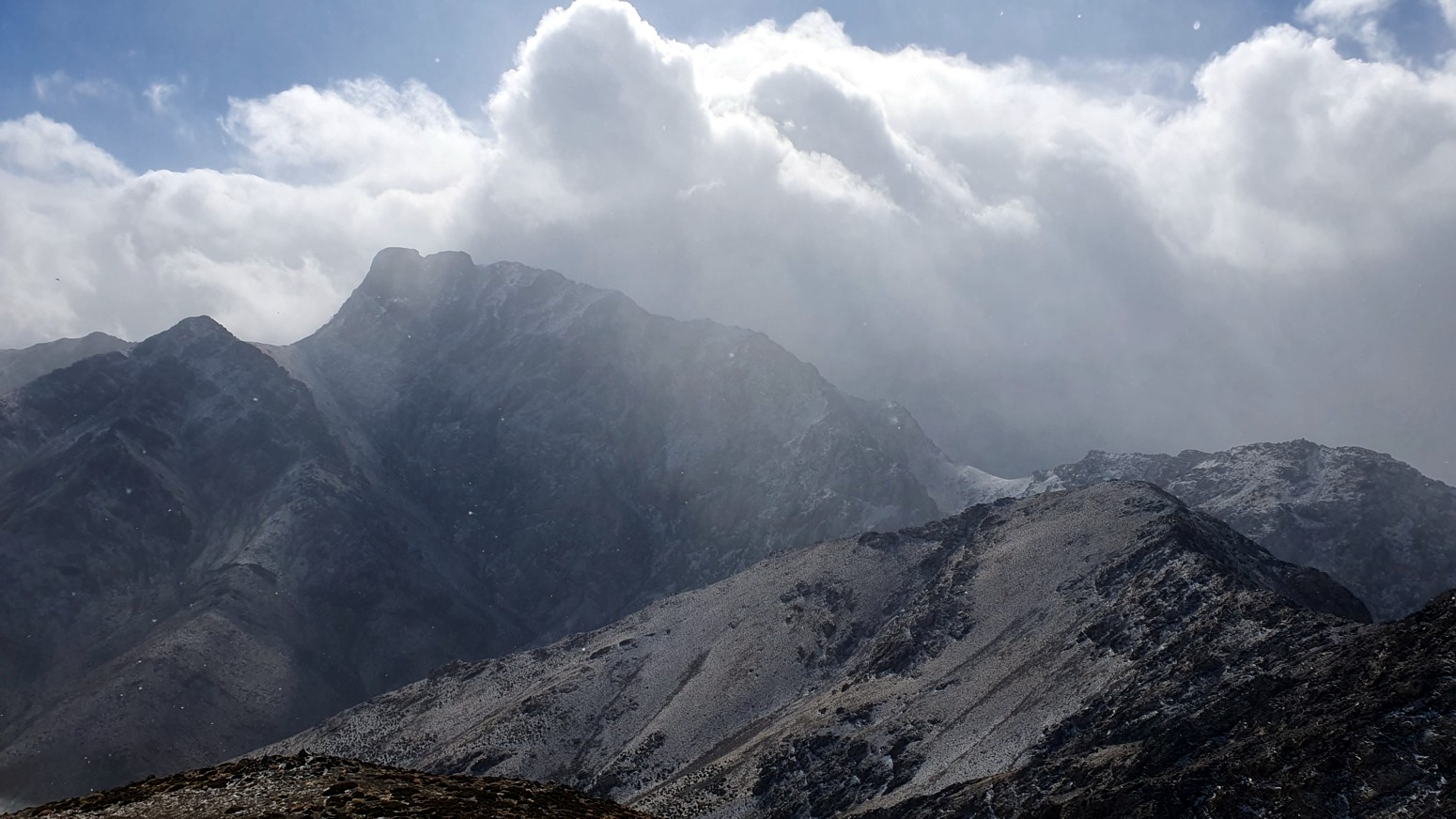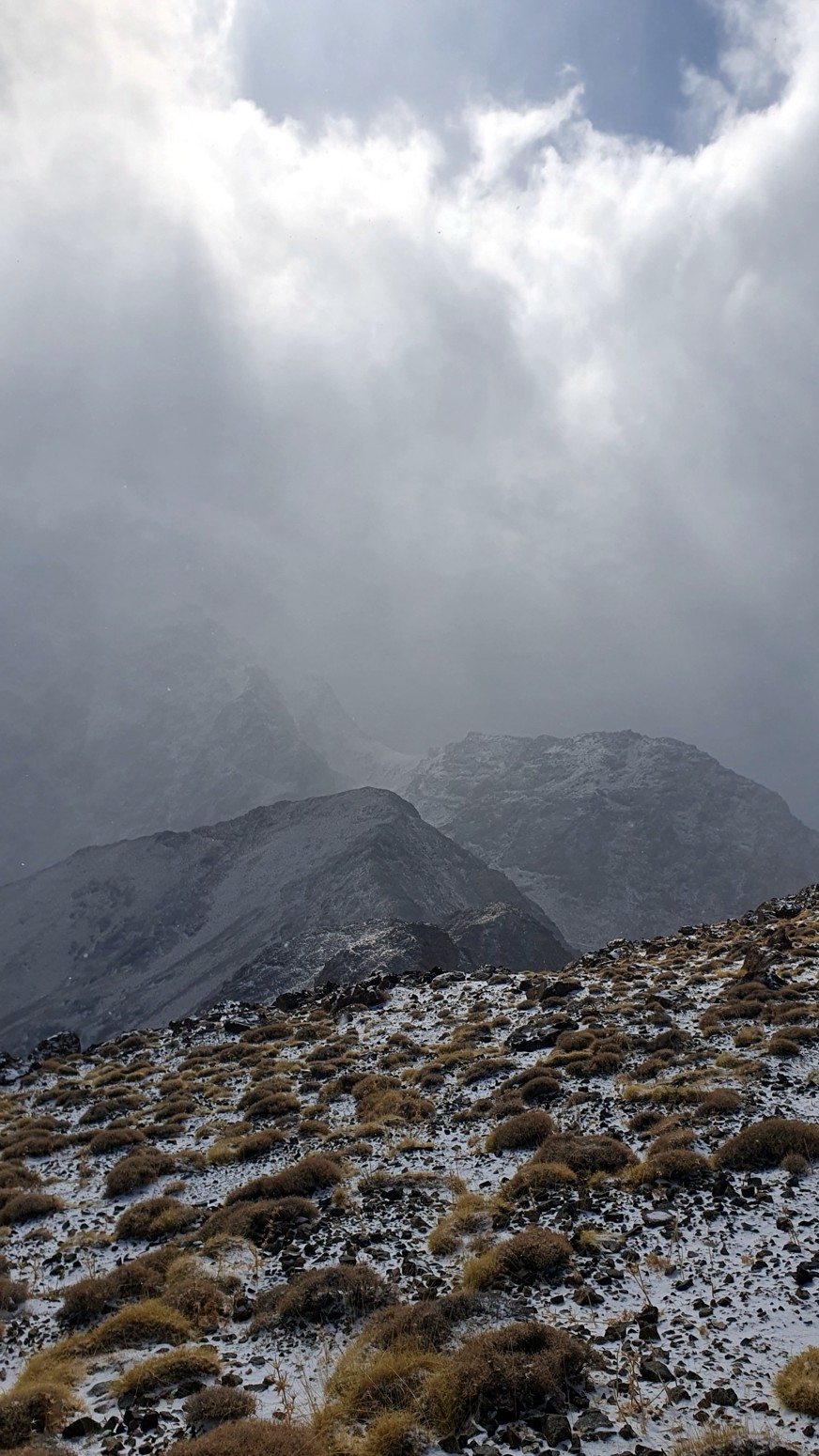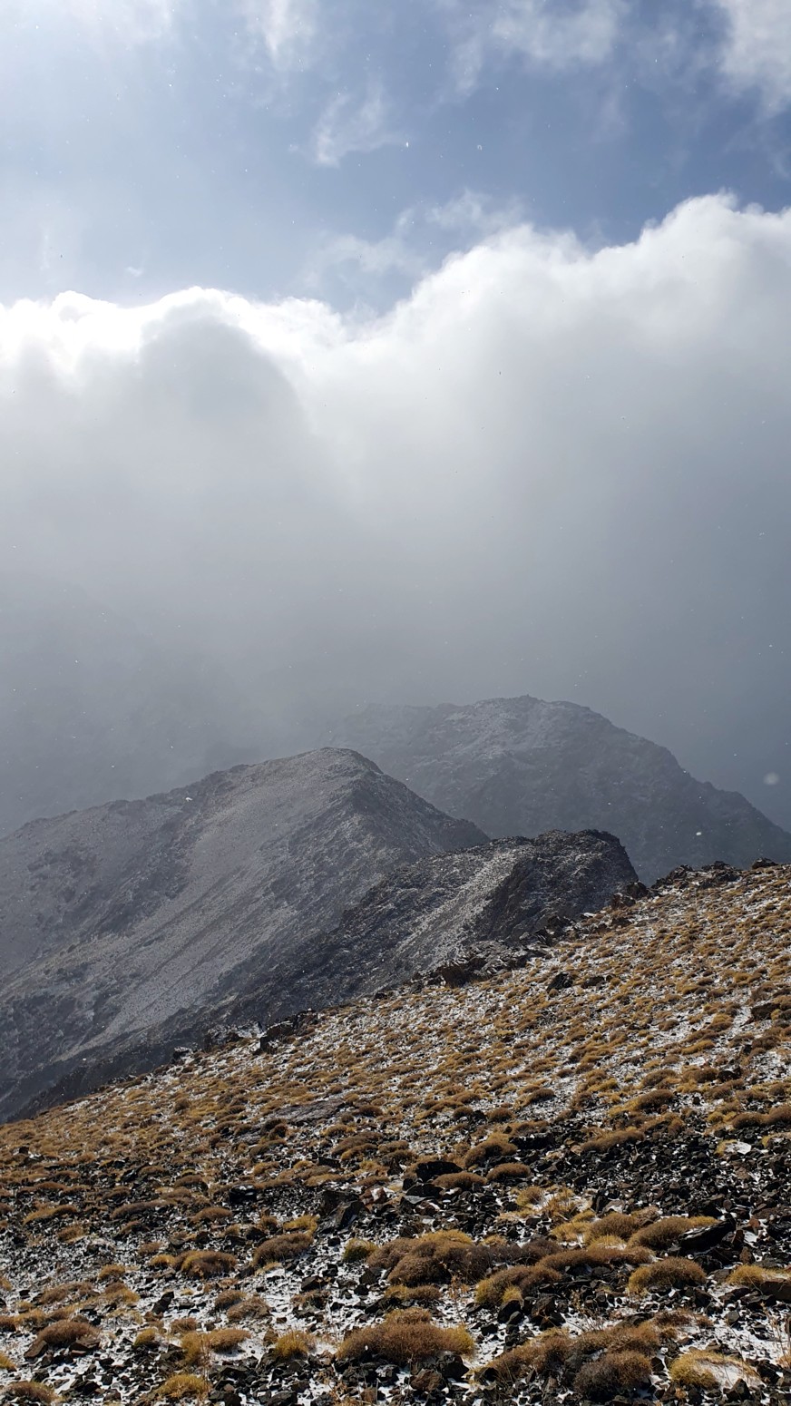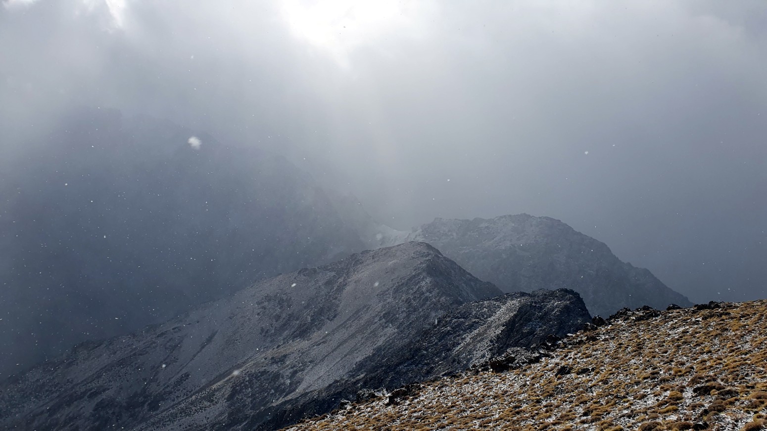 Nos nevó mínimamente mientras subíamos a la cima y