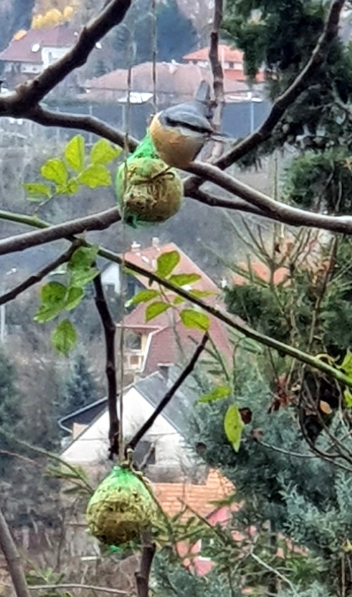 árboles. Se nos ocurre poner unas bolas de comida cerca de las