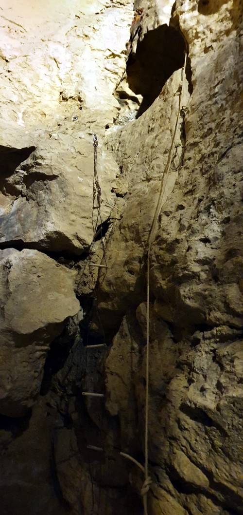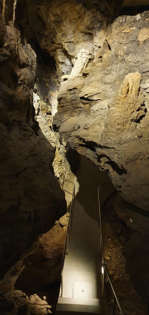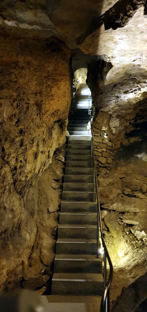 desnivel que se supera es de 28 metros con unos 400 angostos escalones. La temperatura dentro es todo el