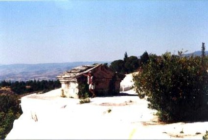 estalactitas blancas (foto 1).Estas aguas fluyen por una ciudad helenística en ruinas