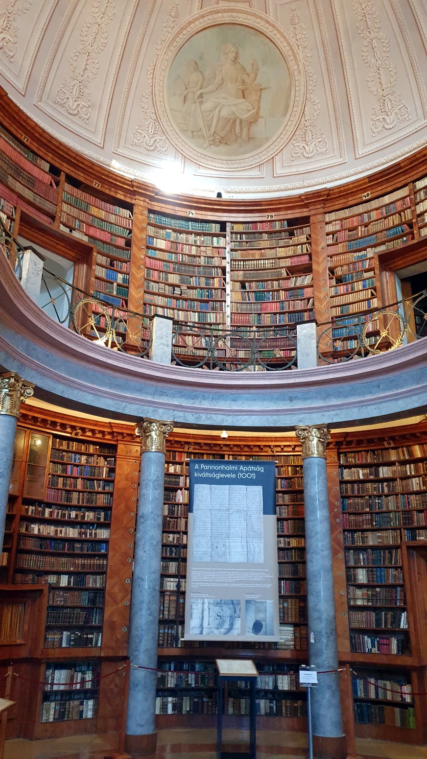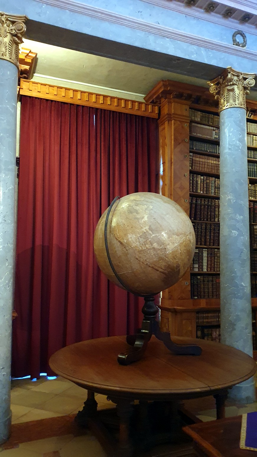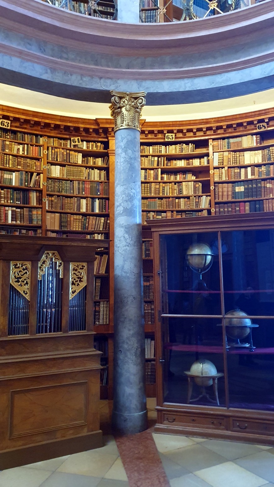 de 400.000 tomos. Las dos salas ovaladas interconectadas, con sus columnas de madera dorada y jaspeada, forman uno de los interiores más armoniosos