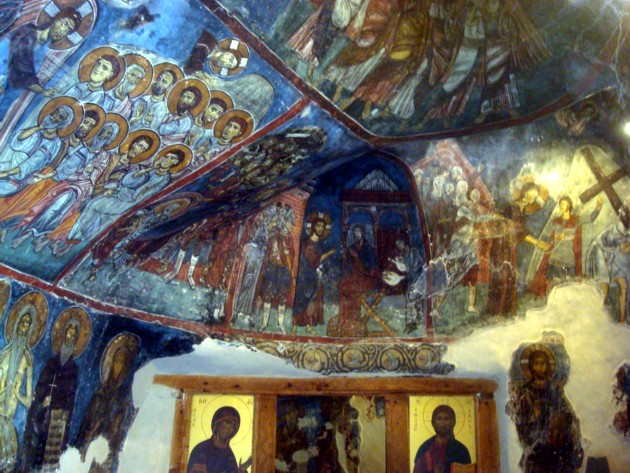contiene mosaicos y frescos de la época bizantina, algunos de ellos