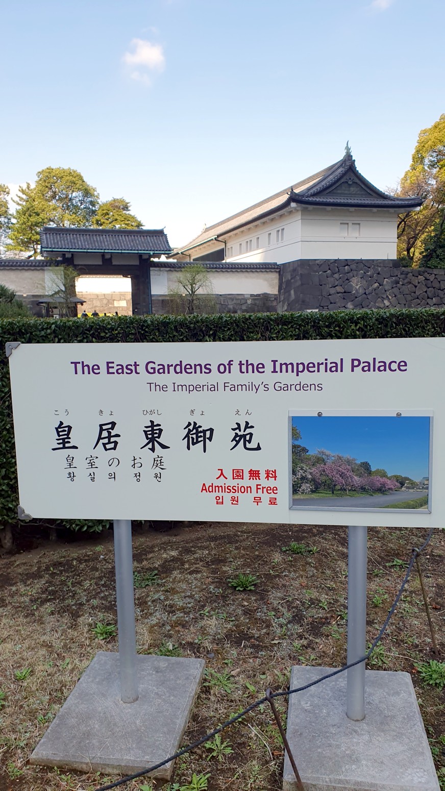 Los Jardines Orientales del Palacio Imperial, también llamado "del Este" se encuentran en el interior del recinto del Palacio y cuentan con flores de temporada, originales fosos,