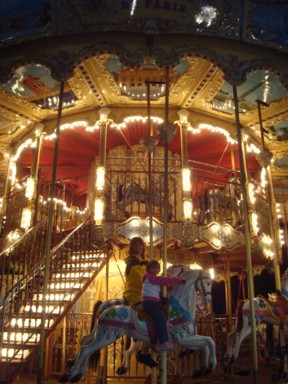 "creppe", las niñas se suben al carrusel (fotos 2 y 3). y antes de cruzar el