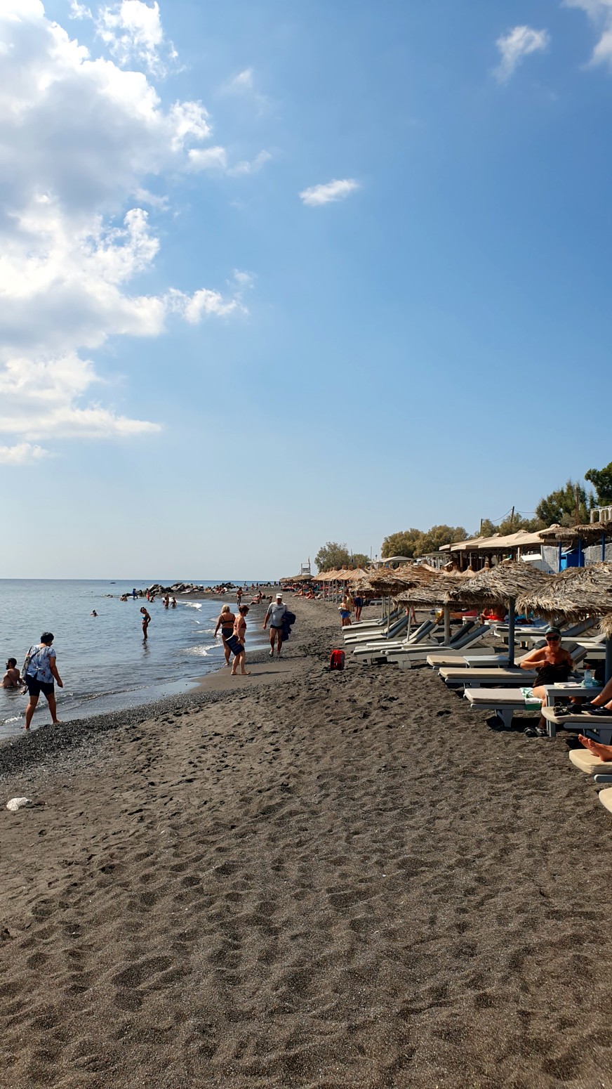 con su color negro, es un lugar extraordinario y un destino de visita obligada en Santorini.