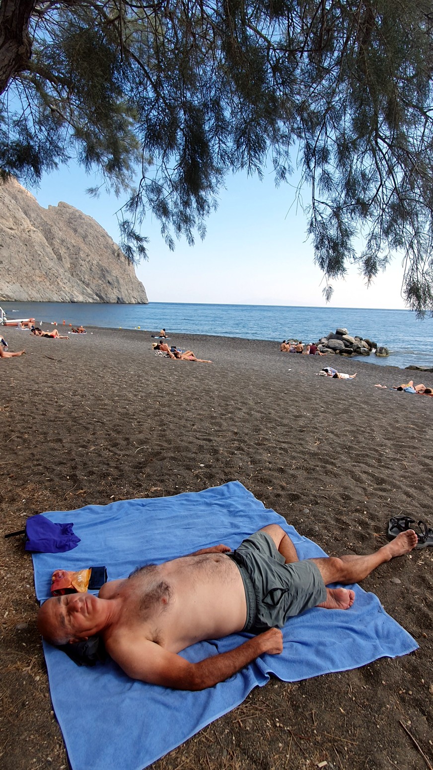 Nos damos una vuelta ahora por el sureste de Santorini. Queremos visitar Perissa y bañarnos en sus playas.