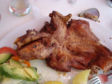 Otro plato que adoran los peruanos, es el cuy (conejillo de indias) asado (foto