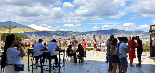 A la salida una terraza moderna con mucho ambiente y mejores vistas sobre la ciudad desde este
