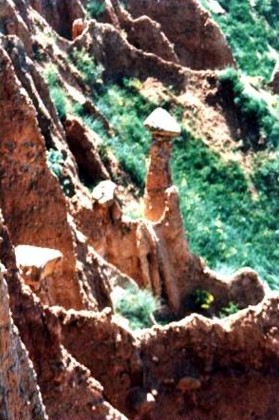 y elegantes, de hasta cuarenta metros de altura y coronadas con piedras de roca, y cada una