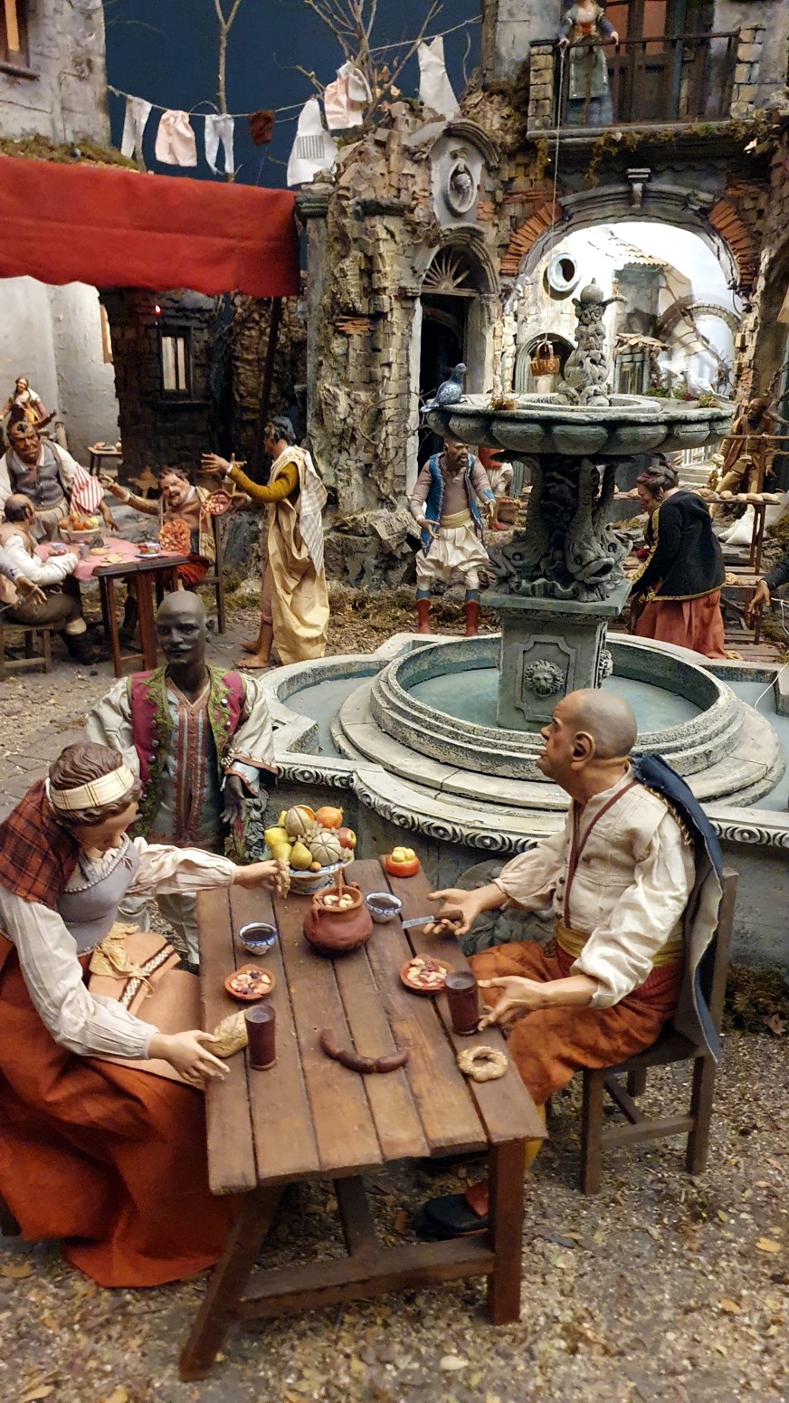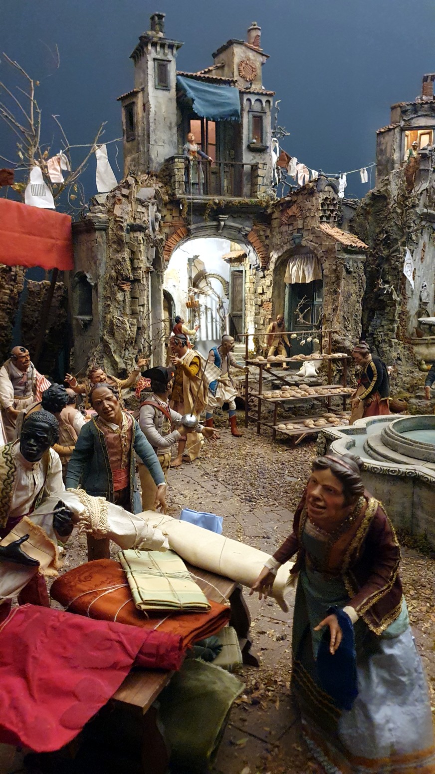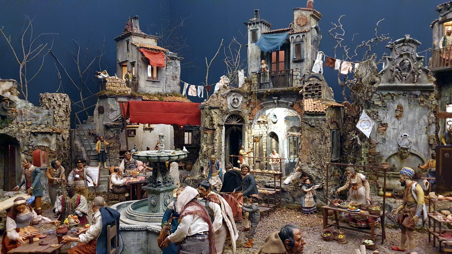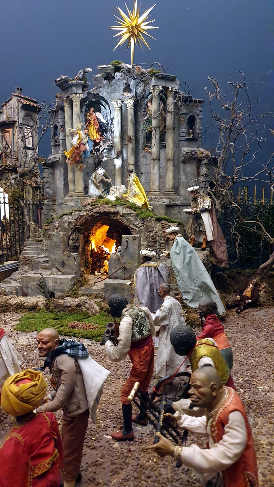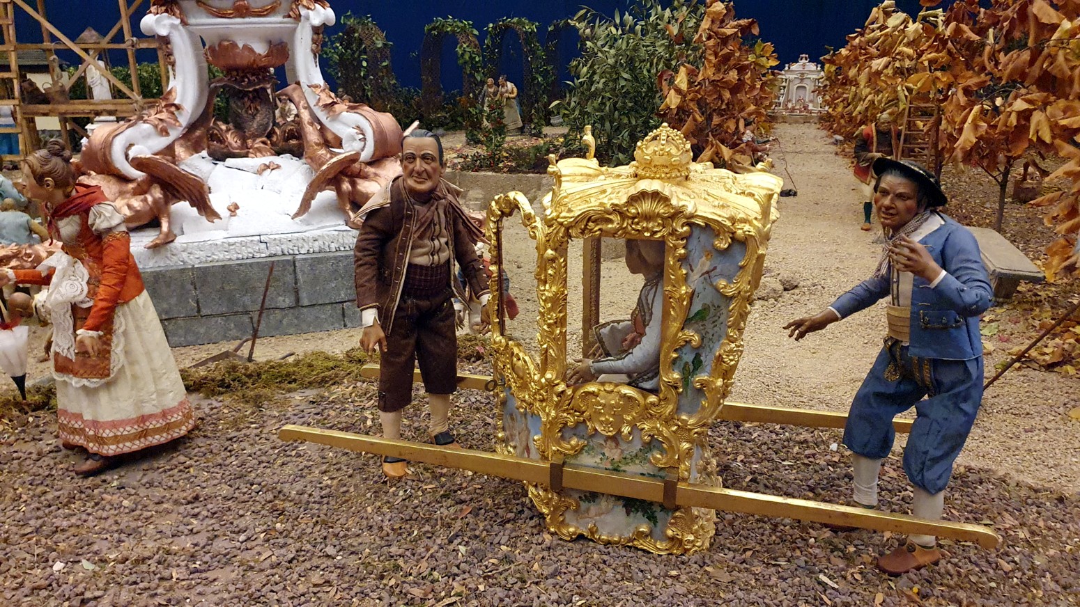 El Belén Napolitano del Palacio cuenta este año con 223 figuras y se extiende a lo largo de 40 metros cuadrados. Las escenas finales son en su