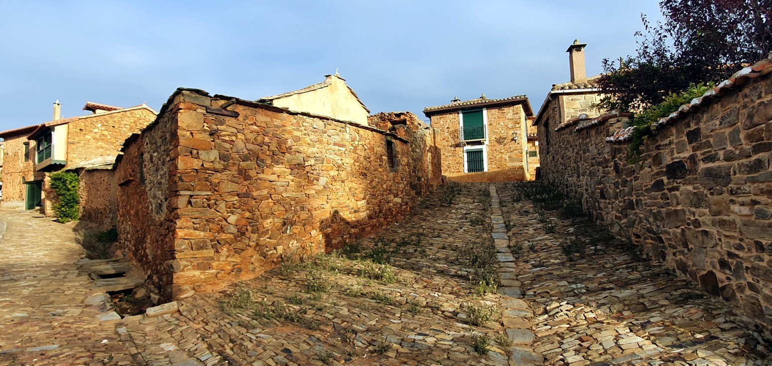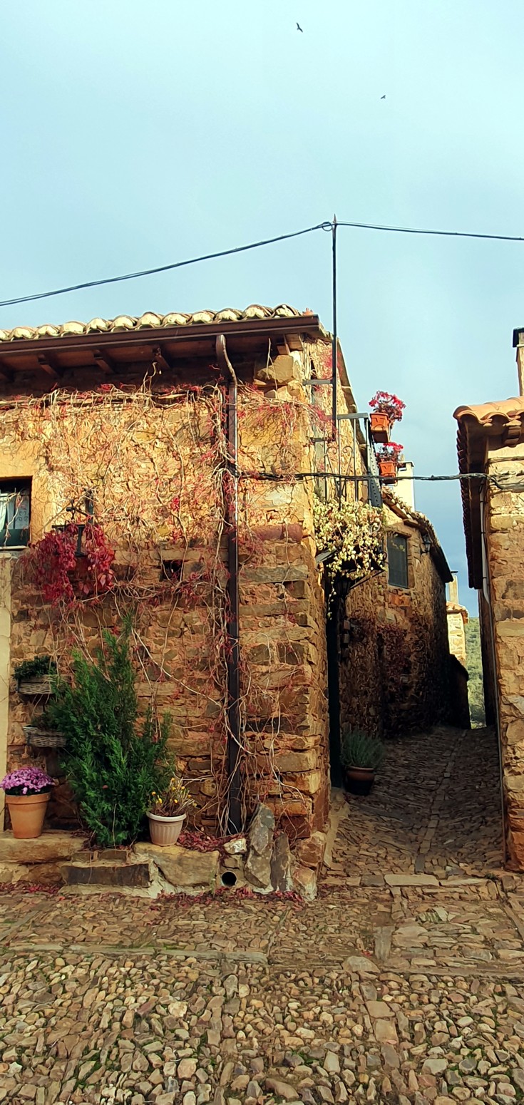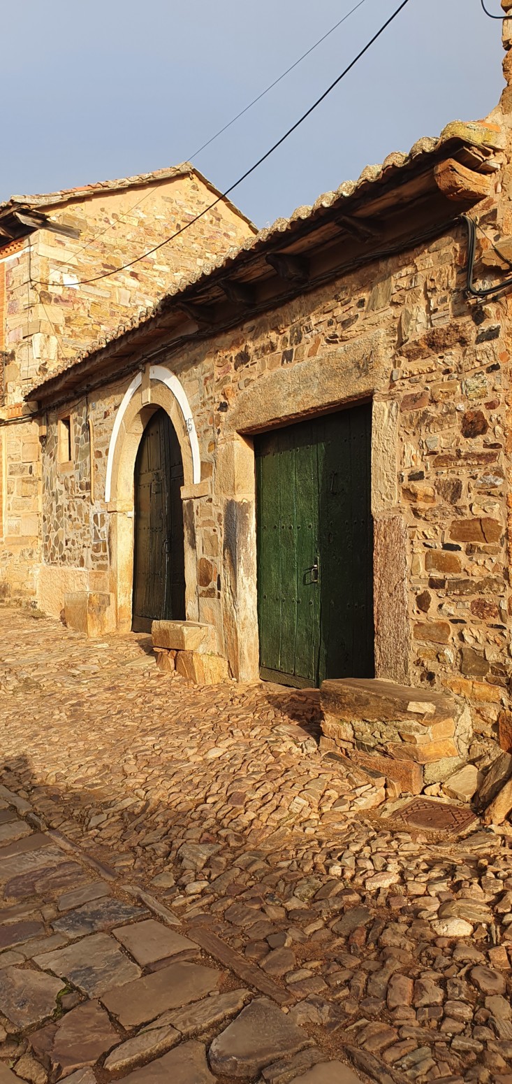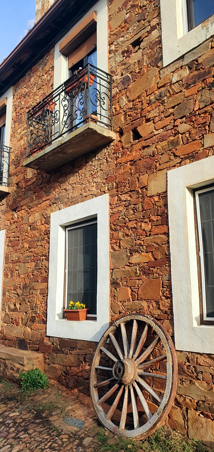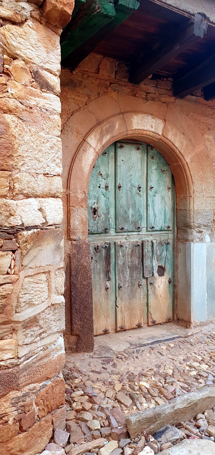 íntegramente su arquitectura popular. La piedra y arcilla roja de sus fachadas contrasta con los vivos colores de los portones y ventanas: azules,