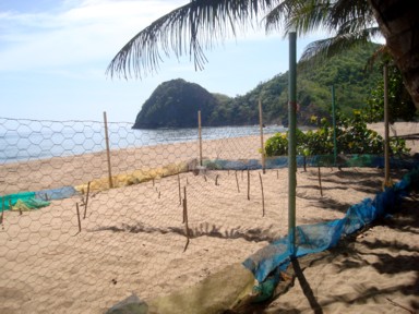 Otra playa vigilada por cuidadores de tortugas y sus huevos, es la de