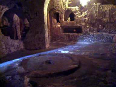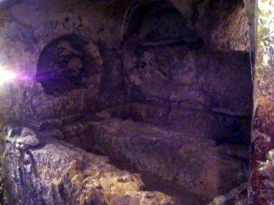 en el suelo que debían estar cubiertas con lápidas, otras talladas en la pared,